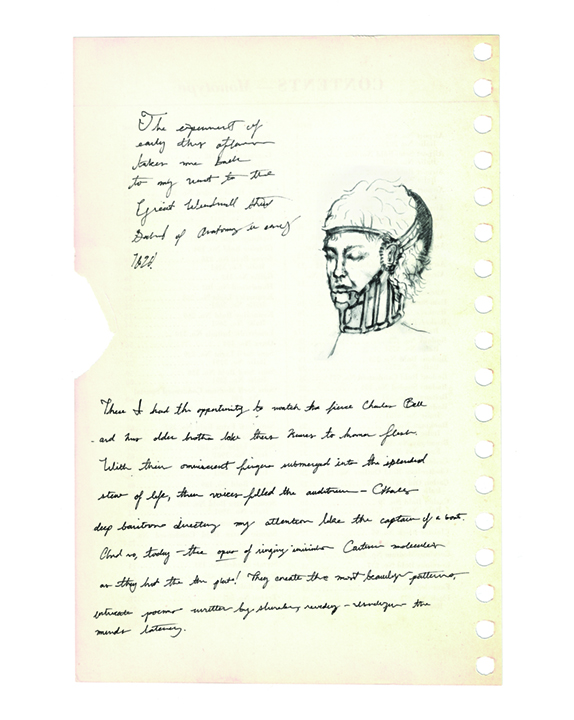 The experiments of early this afternoon take me back to my visit to the Great Windmill Street School of Anatomy in early 1820. There I had the opportunity to watch the fierce Bell brothers take their knives to human flesh. With their omniscient fingers submerged into the splendid stew of life, their voices filled the auditorium – Charlie’s deep baritone directing my attention like the captain of a boat. / And so, today - the opus of ringing invisible / Cartesian molecules as they hit the thin plate! They create the most beautiful patterns, intricate poems written by slumber, revealing – visualizing – the mind’s latency.